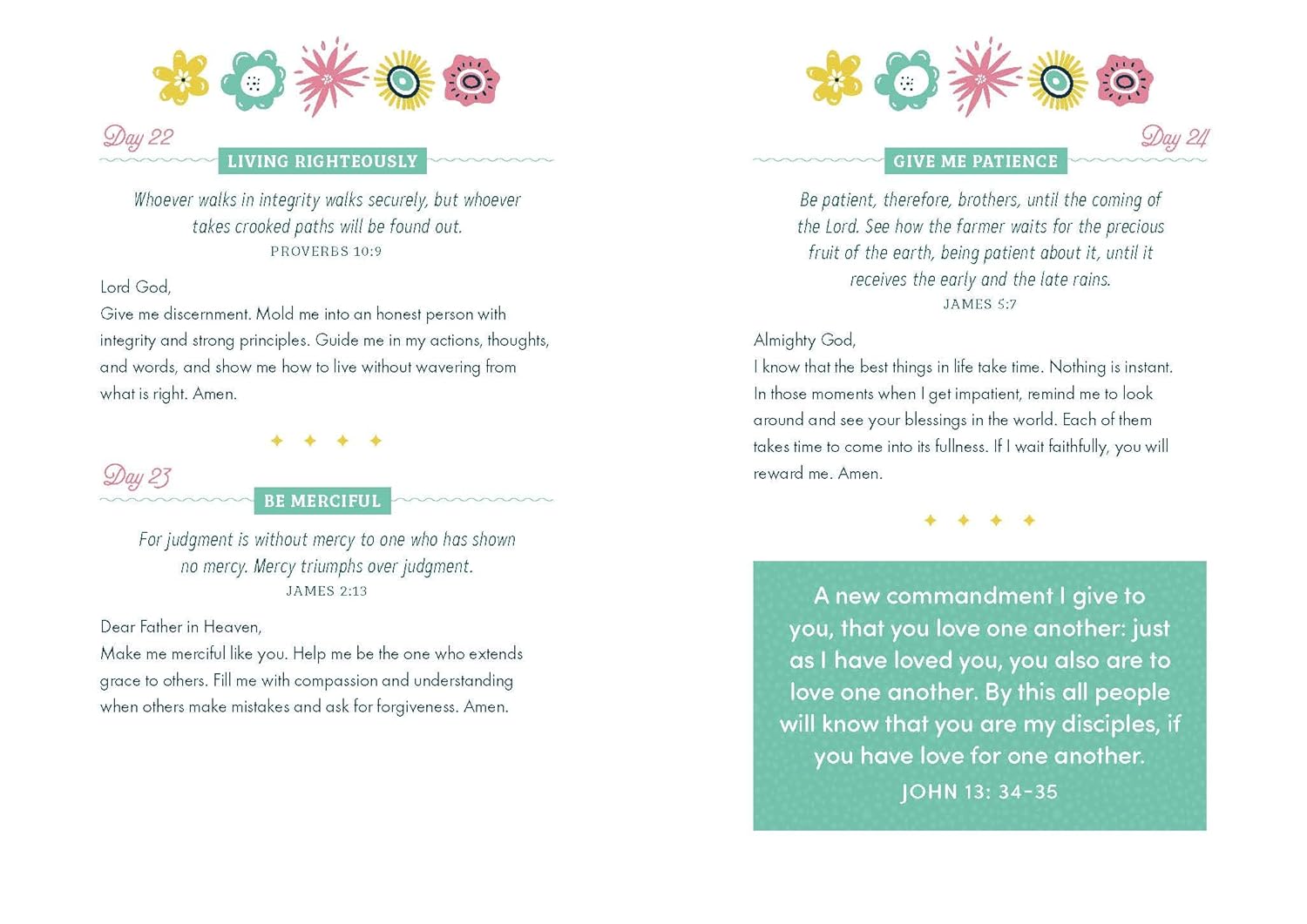 In our busy lives, it’s often hard to find time for a quiet moment of prayer. Daily Prayers for Women makes it easy by providing a verse of scripture for each day of the year accompanied by a prayer that helps you to reflect. The scriptures are chosen to speak to women’s daily experiences. From prayers for strength, forgiveness, wisdom, and understanding to words of gratitude, his holy word is there for you. You’ll find: