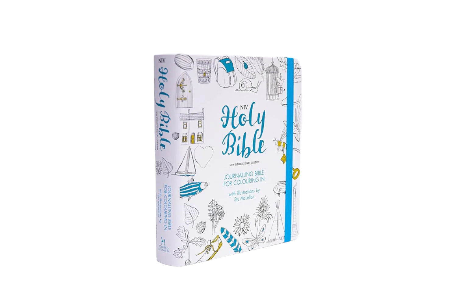 This hardback NIV Journalling Bible features high-quality paper, wide blank margins for notes and artwork, and 32 black-and-white illustrations by British artist Stu McLellan to colour in. Now reissued in a larger format with clearer 9pt text, it includes two ribbon markers, decorative endpapers, and a blue elastic strap. The Bible is set in a readable two-column layout and uses British spelling. Additional features include a reading plan, shortcuts to key Bible content, and the trusted, accessible New International Version text—ideal for personal use, teaching, or study.