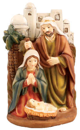 Simple, serene, and full of meaning, this 4½-inch Holy Family Nativity offers a timeless representation of the first Christmas. Featuring three hand-painted resin figures — Mary, Joseph, and Baby Jesus in a cradle - this compact set captures the quiet beauty of that sacred night.